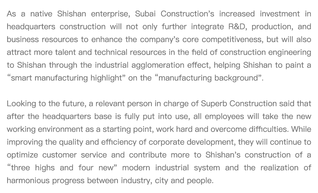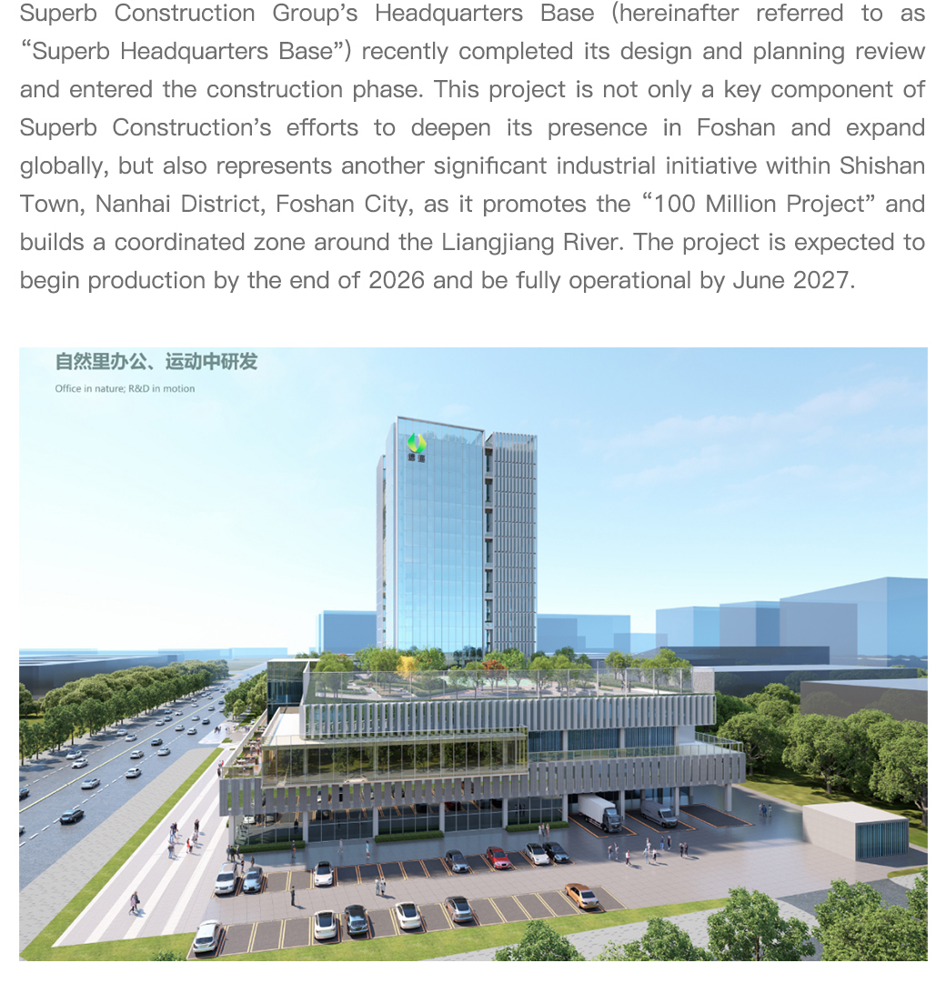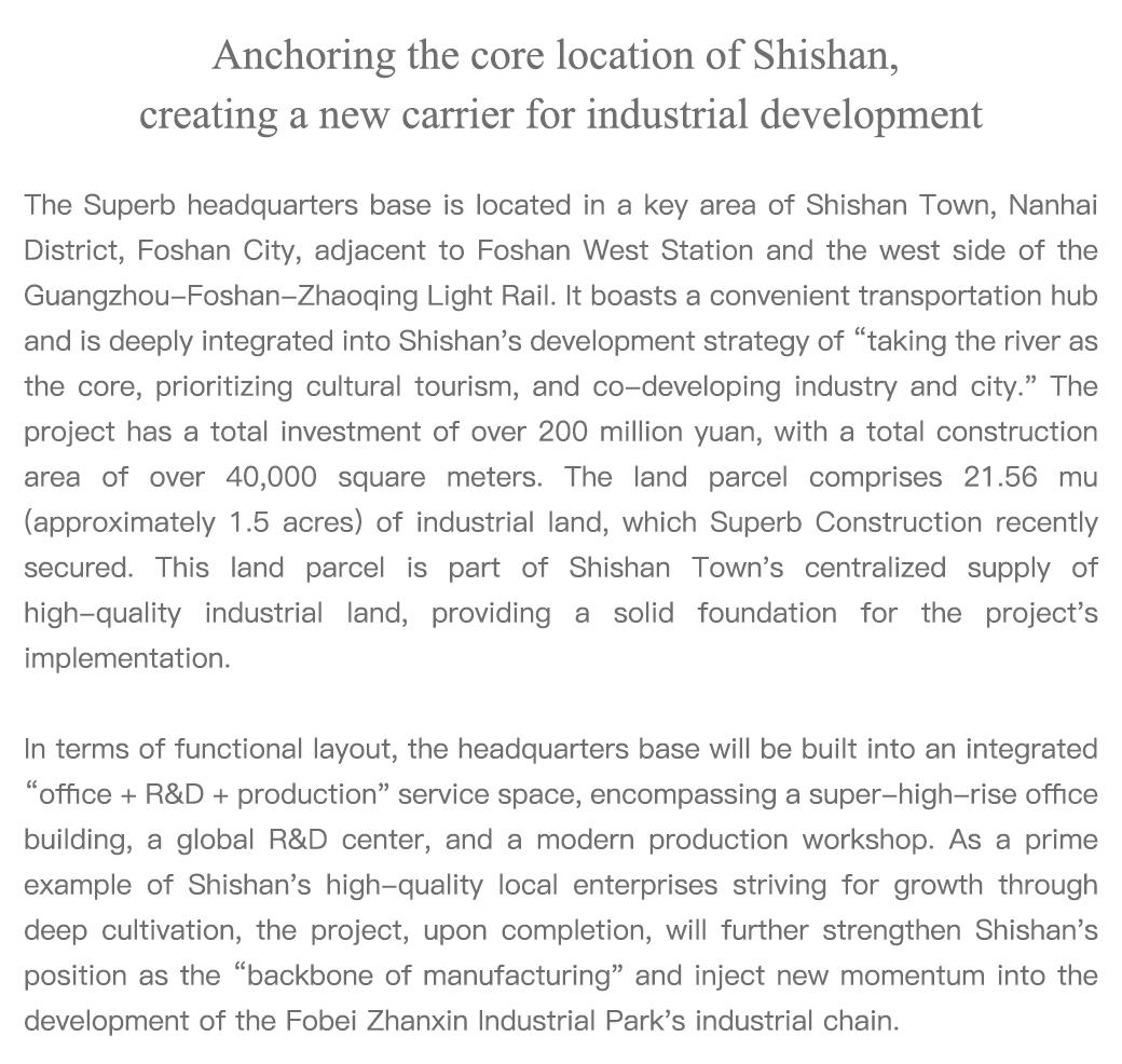 Superb Construction Group’s headquarters base construction officially commences. Settling in Shishan, it establishes a new benchmark for industrial-city integration