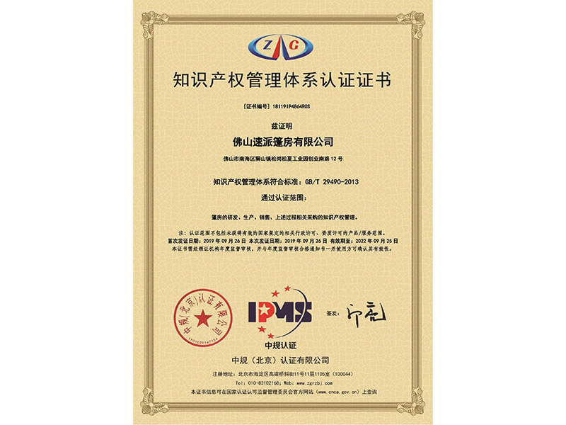 Superb Tent has received the “Intellectual Property Management System Certification” recently, which means that it has been recognized by the management unit in the field of intellectual property, further regulated in terms of intellectual property rights and further enhanced in comprehensive competitiveness.