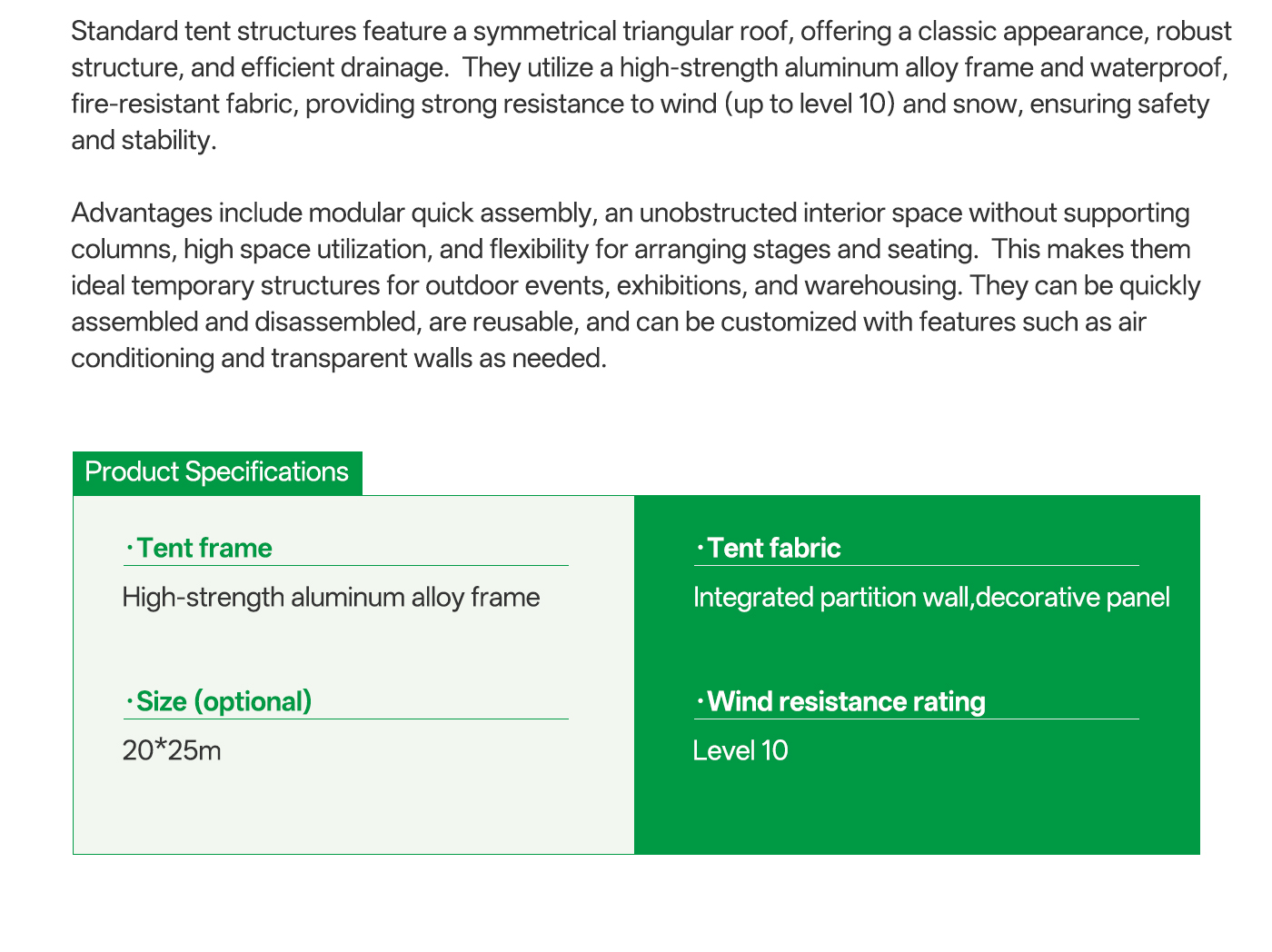 20m x 25m standard tent structure, an outdoor prefabricated building
